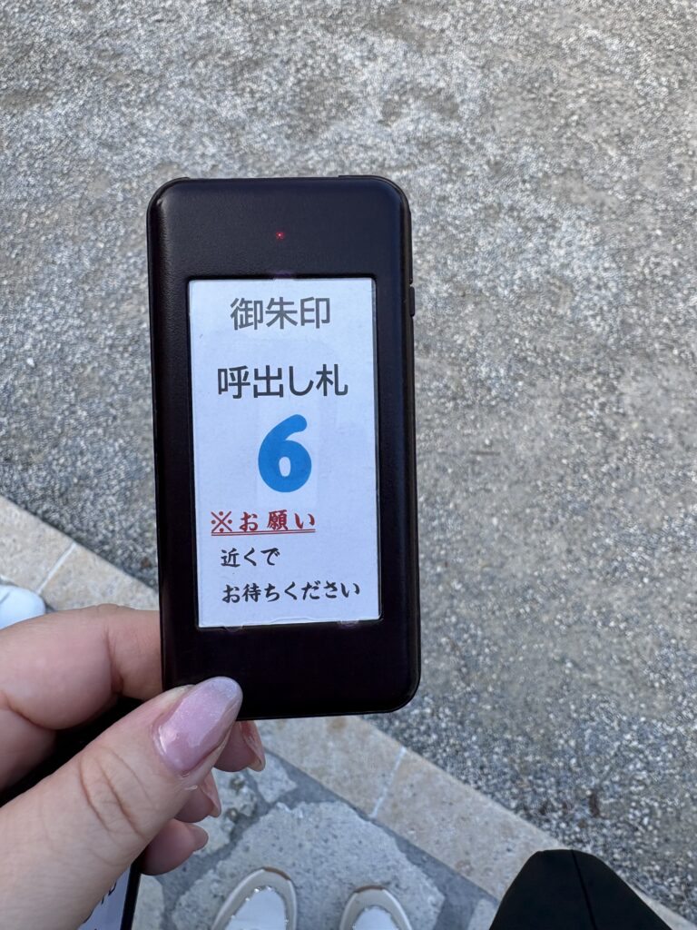 御朱印は受付をしてブザーをもらって待機をして大体10分弱くらいだったと思います。